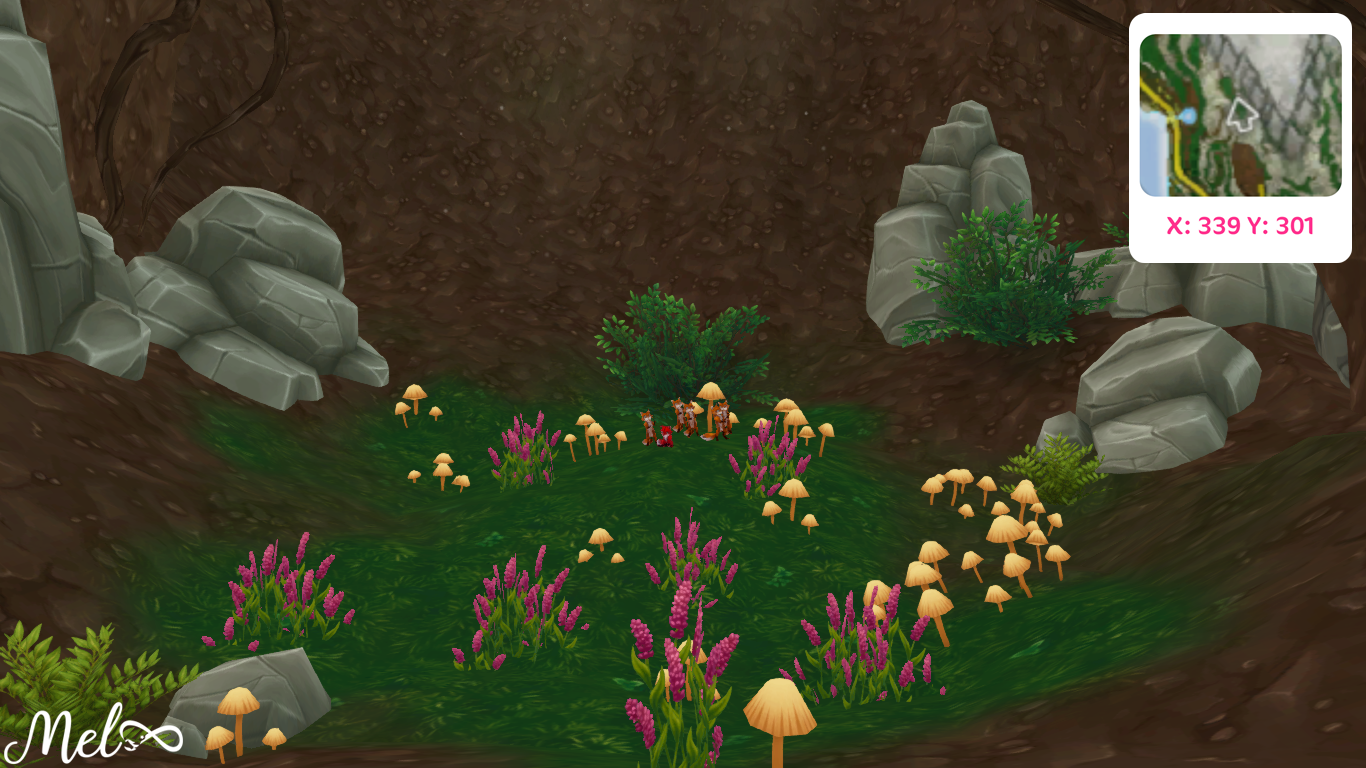 X: 88 Y: 99 - Many mushrooms grow in the canyon but finding the right ones (the ones I marked on the map) and clicking on them lets you call the fox.